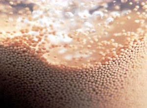 イオン交換樹脂はその分子内に、交換されるイオンを放出する基(例:スルホ基)を持つ。